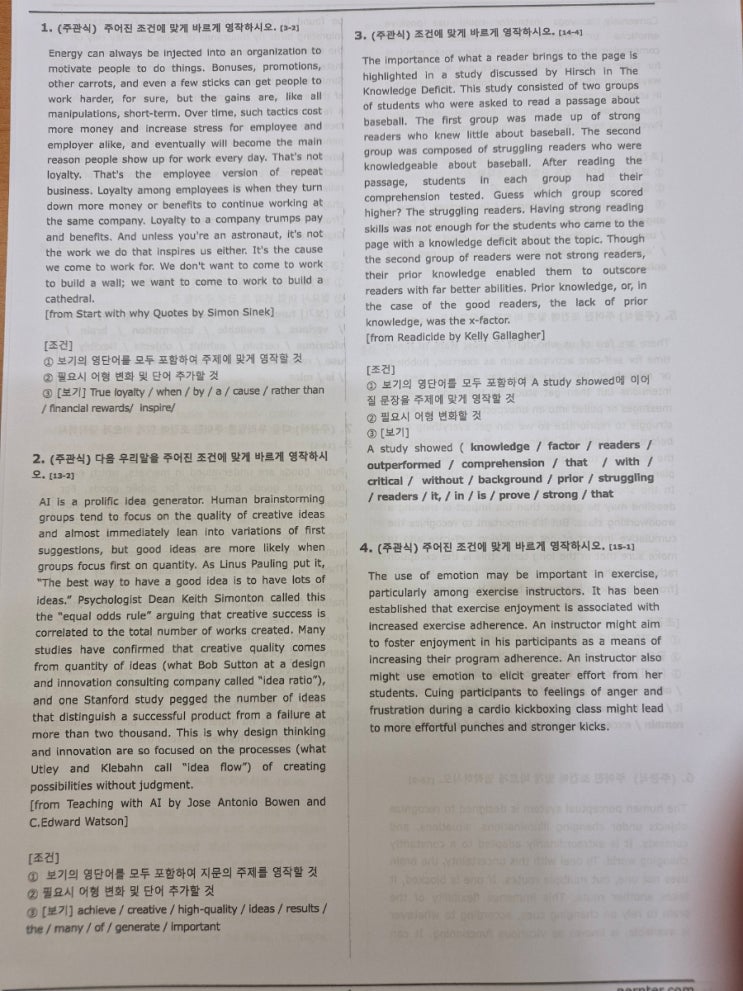 작년 양지고 3학년 영어시험의 학년 평균은 40점이었습니다. 그만큼 시험 난도가 매우 높았다는 것을 보여주는 결과입니다. 양지고 영어시험은 객관식은 수능형 사고력을 요구하고, 논술형은 유형이 다양하고 난도가 높게 출제되는 특징이 있습니다. 특히 고3 시험은 매년 가장 높은 난도를 보이고 있습니다. 더큰교육학원에서는 양지고 기출문제를 기반으로 출제 경향을 면밀히 분석하여, 중난도부터 초고난도까지 단계별 맞춤 논술형 문제를 자체 제작해 학생들이 충분히 대비할 수 있도록 지도하고 있습니다. 내일이 양지고 영어시험입니다. 아이들이 그동안 준비해 온 만큼 실력을 안정적으로 발휘할 수 있도록 끝까지 세심하게 지도하겠습니....... <img src="https://blogthumb.pstatic.net/MjAyNjA0MjZfMTU3/MDAxNzc3MTc5NDQyNzE4.c_1p_aysxVVJD0_816iRg0OsG5pYdHGsRT3Ju48qCZgg.rPtrlnpRUnFa3XkJJK11BTD8b2_cWxGSjgRtH8vdW-4g.JPEG/900_20260426_130053.jpg?type=s3" />