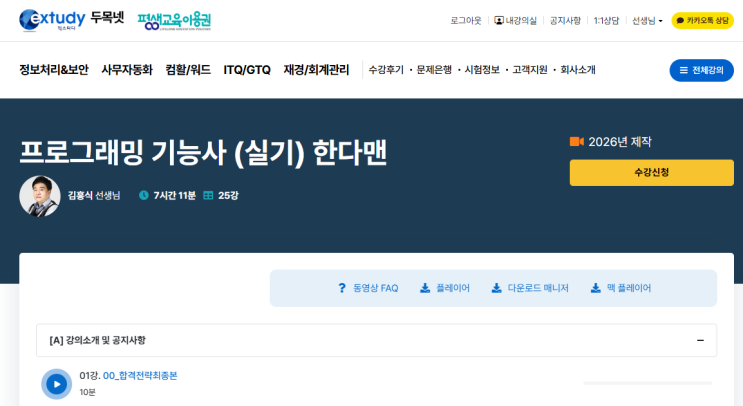 [두목넷] 프로그래밍기능사실기 개강(26/04/23)
