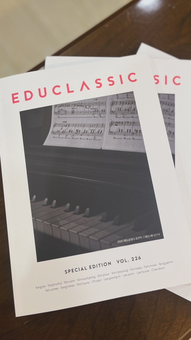 음악교육잡지 에듀클래식 휴먼북 2026 음악교육잡지인 에듀클래식과 2020년 인연으로 감사하게도 벌써 두번의 인터뷰 (2020,2021년) 그리고 2023년에 이어 두번째 음악칼럼을 기고하게 되었어요 좋은 기회 주셔서 감사합니다. <img src="https://blogthumb.pstatic.net/MjAyNjA0MjRfNTYg/MDAxNzc2OTU3MTg4NzUx.1saDsyd6jQUumrvyIMkXodZtDZhko8lmJX2z1F4gIV8g.yENoFyMiYGEEyk9H9N55w9DyWG4FbP6v92kLHzLZRxQg.JPEG/420E5B17%A3%AD24C9%A3%AD4FA2%A3%AD95E7%A3%AD3A9FC64EB0AB.jpg?type=s3" />