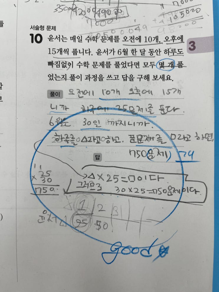 with공선생 이렇게 빨리 적용하는데, 그동안 왜? 잘하는 것 같은데 잘하지 않는...그래서 작정을 했습니다! 수학을 못하는 건 아니지만 잘하는 것도 아닌 그렇고 그런 초5 친구가 있습니다. 학교에서 보는 시험은 그런대로 잘 보지만 학원에서 보는 시험은 잘 못 보는 평범한 우리네 초5 친구랍니다. 4월부터 제가 이 친구를 지도하게 되었는데요. 이 친구의 학습지를 채점하다 보면 곱셈을 할 때도 곱이 클 것 같으면 빠트린 척 안 해놓고(최소공배수), 여기다 끄적끄적, 저기다 끄적끄적...누락된 부분이 보이고(최대공약수) 식을 쓰라면 그야말로 서술을 해버리더란 말이죠. 당연히 정돈되고 깔끔함을 기대하기가 어려운 부분이 있었습니다. 도....... <img src="https://blogthumb.pstatic.net/MjAyNjA0MTZfNjkg/MDAxNzc2MzM3Nzg4NTc5.Y5uuM-adw_ERzF4AO3BbIAqDq-3t7JETe27WnPd8ZFAg.Q2efp2tmESyjxF2YgPm5msuQ5u-FBYDcsetE3z3ik2kg.JPEG/KakaoTalk_20260415_195400385.jpg?type=s3" />