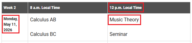 안녕하세요 강남 압구정에 위치한 휘 실용음악 학원입니다! 어느덧 4월도 끝자락을 향해 가고 있습니다. 다음 달이면 학생들이 그동안 열심히 준비해 온 AP(Advanced Placement) 과목들의 시험이 본격적으로 시작되는데요. 오늘은 2026년 AP Music Theory 시험을 약 2주 남겨둔 시점에서, 올해의 시험 일정과 남은 기간 반드시 체크해야 할 전략, 그리고 시험 당일 주의 사항에 대해 안내드리려고 합니다! 먼저 가장 중요한 시험 일정을 확인해 보겠습니다. AP Music Theory 시험은 2026년 5월 11일 월요일 오후 12시(Local Time 기준)에 진행됩니다. 다음은 시험 구성 및 배점에 대해 알아보겠습니다. 시험은 크게 객관식(Section 1)과 주관식(S....... <img src="https://blogthumb.pstatic.net/MjAyNjA0MjhfMTE0/MDAxNzc3MzUwOTYyNDcy.a_kMKySekT2RldM8sdPR1pLY78jrrqyT-jB6wy3V5FYg.mLVSZQpY_KgGh2i4D5dtUPXbZ8n0VhJaE4Cn0KQtl4Eg.PNG/123123.png?type=s3" />