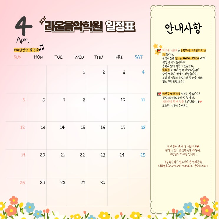 새솔라온음악학원 4월 일정표♥