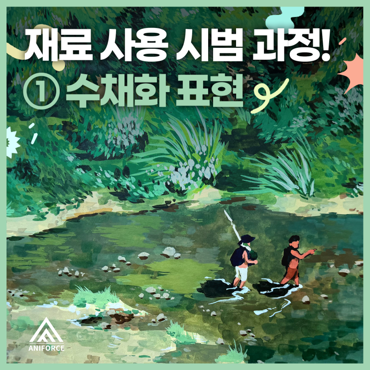 안녕하세요! 즐겁게 그림을 배우고 성장하는 화명 애니포스 만화학원입니다. 오늘은 화명애니포스에서 진행한 재료별 표현 방식 시범을 소개해드리려고 합니다! 같은 그림이라도 어떤 재료를 사용하는지에 따라 ✔ 색감 ✔ 질감 ✔ 표현 방식이 완전히 달라지게 됩니다. 이번 시간에는 그 중에서도 수채화 표현을 중심으로 과정을 보여드리겠습니다 :) 간단한 스케치에서 시작해 빛과 색을 쌓아가며 어떻게 화면의 깊이와 분위기가 완성되는지, 과정 중심으로 함께 살펴보려 하는데요! 그림이 완성되어가는 흐름, 지금 바로 확인해 볼까요? ✏️구도 스케치✏️ 전체적인 구도와 흐름을 잡는 단계입니다. 이 단계에서는 세부 묘사로 들어가기 전....... <img src="https://blogthumb.pstatic.net/MjAyNjA0MjBfNDcg/MDAxNzc2Njc5MTEyMDc1.OcSar0qhwfODScEJ0t-myaOO4puWKf5cT9tV_a2vzlUg.pRZ27BZlnwcJpt2aLqtiH798I7a-x9cWRY62B4lesTgg.PNG/%BD%E6%B3%D7%C0%CF%281%29.png?type=s3" />