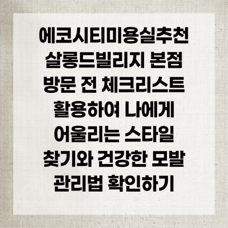 에코시티미용실추천 살롱드빌리지 본점 방문 전 체크리스트 활용하여 나에게 어울리는 스타일 찾기와 건강한 모발 관리법 확인하기