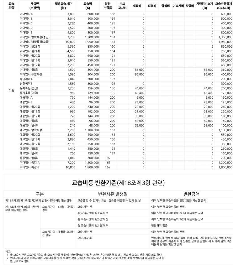 교습비등(교습료) 표시 • 게시