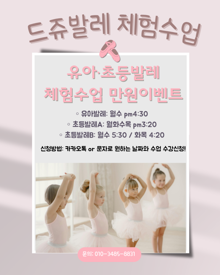 유아초등발레 체험수업 만원 이벤트!