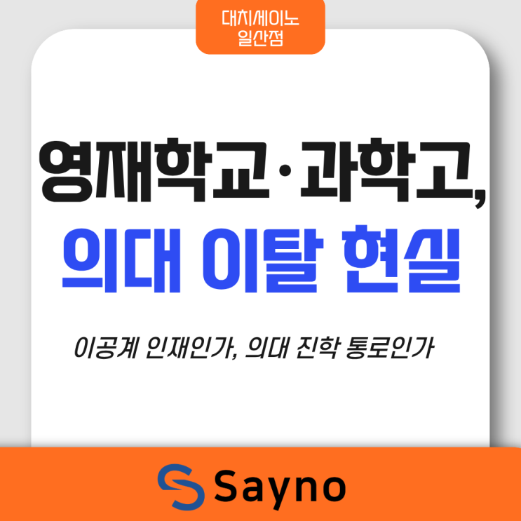 안녕하세요! 대치세이노 일산점 입니다. 최근 영재학교와 과학고 학생들의 의약계열 진학이 꾸준히 증가하고 있습니다. 이공계 인재 양성을 목표로 설립된 학교임에도 불구하고 의대와 약대로의 진학이 늘어나면서 제도의 취지와 현실 사이의 괴리가 점점 커지고 있습니다. 특히 재학생뿐만 아니라 졸업 이후 재수를 통해 의대에 진학하는 사례까지 증가하면서 단순한 개인 선택을 넘어 구조적인 문제로 확대되고 있습니다. 이번 글에서는 2026학년도 데이터를 바탕으로 의약계열 이탈 현황과 그 원인, 그리고 필요한 대응 방향을 살펴보고자 합니다. 2026학년도 기준 영재학교와 과학고 재학생 중 의약계열로 진학한 인원은 총 38명으로 집계되....... <img src="https://blogthumb.pstatic.net/MjAyNjA0MThfNjUg/MDAxNzc2NDg5MTI5NDM4.Ilw16IynCJXcxdyJhl5OxXjEcwFAxw1imiVdPtL1NKsg.7GuAXFE-Codh7Iym8Qzi4qAIaUQLh4tmGHJM6igw0Kcg.PNG/1.png?type=s3" />