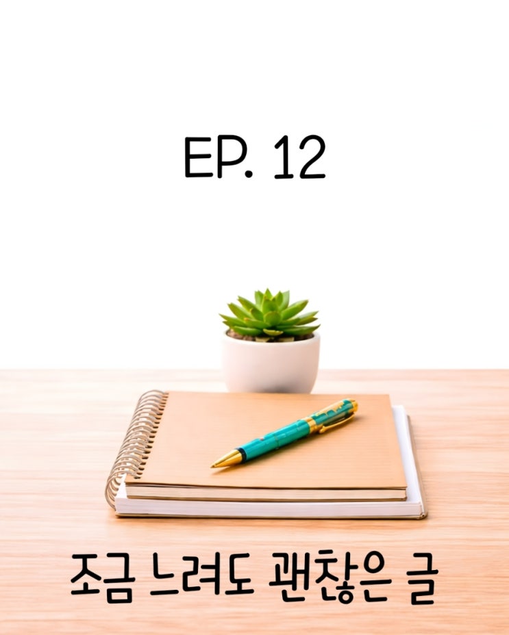 EP.12 조금 느려도 괜찮은 글 며칠 뒤 수행평가 점수가 나왔다. 85점 지난번보다 조금 낮았다. 빨간 펜으로 이렇게 적혀 있었다. 전개는 안정적이나 설명이 다소 간략함 나는 그 문장을 오래 바라보지 않았다. 이미 알고 있었기 때문이다. 시간이 부족해서 설명을 줄여서 썼던 순간이 선명하게 떠올랐다. 집에 돌아와 시험지를 다시 펼쳤다. 읽는 데는 오래 걸리지 않았다. 문장은 깔끔했고 주장은 또렷했다. 하지만 서둘러 끝낸 흔적이 역력히 느껴졌다. 아마 선생님도 나처럼 느끼셨기 때문에 지난번보다 낮은 점수를 주셨을 거라고 생각했다. 나는 노트를 꺼내 같은 주제로 다시 써보기로 했다. 이번에는 시계를 안 보고 천천히 내가 왜 그렇....... <img src="https://blogthumb.pstatic.net/MjAyNjA0MjFfMjYx/MDAxNzc2NzM1NDAxOTUz.uUXYxSOynKN44D1viUO6r0ylBPWbITUDx3q_bzHr_iwg.pn3DgJV8TzRMLakKLsNdEIx-kAhN13CyzA3bsYzzPrwg.JPEG/900_20260421103415.jpg?type=s3" />