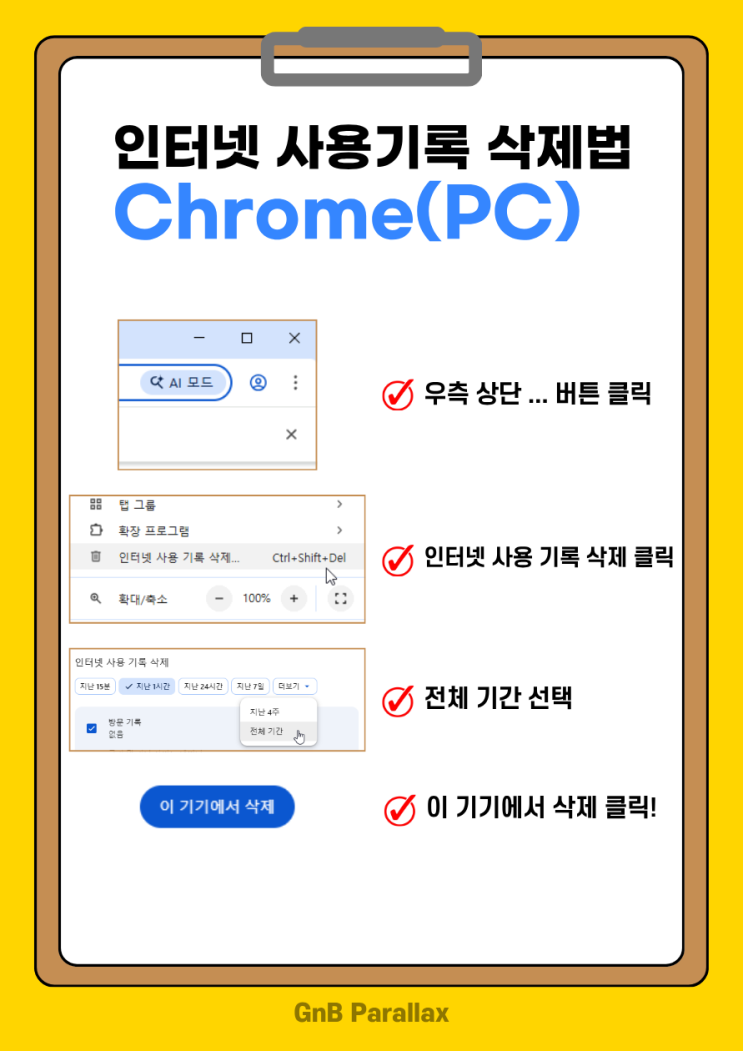 이번 4/16 Gplum 업데이트로 인해 기존 학습자들은 인터넷 사용기록을 한번 초기화해야합니다. 각 브라우저 별 초기화 방법을 안내드리오니 참조 부탁드립니다. PC Chrome 2. PC Edge 3. 모바일 Chrome 4. 모바일 Safari 5. 모바일 삼성 인터넷 기타 브라우저라도 비슷한 위치와 비슷한 형태이며, 잘 안되실 경우 원으로 연락 부탁드립니다. 전화번호 : 031-577-3998 <img src="https://blogthumb.pstatic.net/MjAyNjA0MTZfMjQx/MDAxNzc2MzQyOTg0OTYx.LJFxF_srhLJxNjCNh1U9z75BamEu9kg8YATn9OGX87wg.64JHcPEHiVtHVsz6Qjd3BojrSgr1PJNXS00DGZ9hZhAg.PNG/1.png?type=s3" />