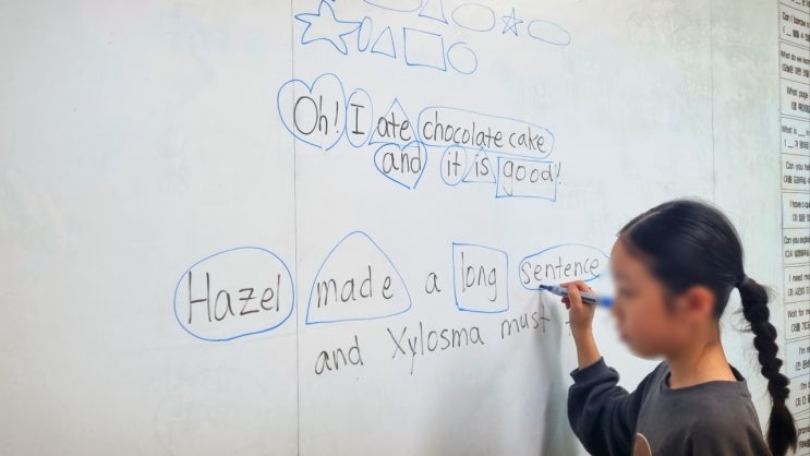 안녕하세요, 토마스 국제어학원입니다. 오늘은 토마스 로고스 과정 학생들의 액티비티 수업 사진을 공유드립니다. 오늘은 그중에서도 Day 7에 진행되는 8품사 수업 소개드립니다. 토마스 로고스 수업의 강점 바로 소설과 비소설을 함께 학습한다는 것입니다. 취향에 따라 편식하기 좋은 원서 읽기, 편식 없이 골고루 꼭꼭 씹어먹을 수 있는 로고스! 학생들의 품사 학습은 레벨 1 단계부터 시작됩니다. 간단한 명사/대명사/동사 구분에 이어 형용사/부사가 추가되고 접속사/전치사/감탄사까지! 스토리북 속 문장 뿐 아니라 다양한 예문을 직접 만들고 분석해볼 수 있습니다 :) 문장 속 품사를 구분하는 활동에 이어, 재미있는 단어 품사 게임까지....... <img src="https://blogthumb.pstatic.net/MjAyNjA0MjFfMjgg/MDAxNzc2NzQ1MjY5MjQ3.KRWRVxwUlv_VUbjYRY50S_Hndu5AprAFlqkSBNJA-ysg.qGCcnJcPfZY_gNGLTalr_pKN8n0jo__TV6TcM_AvBXwg.JPEG/4_%282%29.jpg?type=s3" />