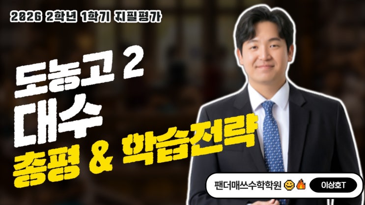 "도농고 2학년 1학기 1차 지필평가 분석" 안녕하세요, 남양주 초중고 수학전문, 팬더매쓰수학학원입니다. 도농고등학교 2학년 1학기 1차 지필평가 대수 기출 분석을 해보겠습니다. 시험 개요 -총 문항 수: 22문항 (선택형: 19문항 / 논술형: 3문항) -출제 단원: 지수 로그 5문항 / 지수함수,로그함수 9문항 / 삼각함수 2문항 / 삼각함수의 그래프 6문항 자세한 코멘트는 영상을 통해 확인해주시기 바랍니다. 이번 지필평가 총평 & 앞으로의 학습 전략 1. 무난하게 균형 잡힌 시험 쉬운 문제와 어려운 문제가 적당히 균형 잡힌 시험이었습니다. 논술형에서 어려운 문항들이 배치가 되었습니다. 즉 객관식에서의 시간 소비를 적절히....... <img src="https://blogthumb.pstatic.net/MjAyNjA0MjJfMjk1/MDAxNzc2ODU3NzAyNjkw.m1UWOihbAGrsFnncBRWMso9ajy18Z0WniHt7ucKR_log.ZtHXJQBNgG6u5arocjXmAMGhoggYju7saz6so2ZlNr4g.JPEG/2026%B3%E2_1%C7%D0%B1%E2_1%C2%F7_%C1%F6%C7%CA_%BD%E6%B3%D7%C0%CF.jpg?type=s3" />