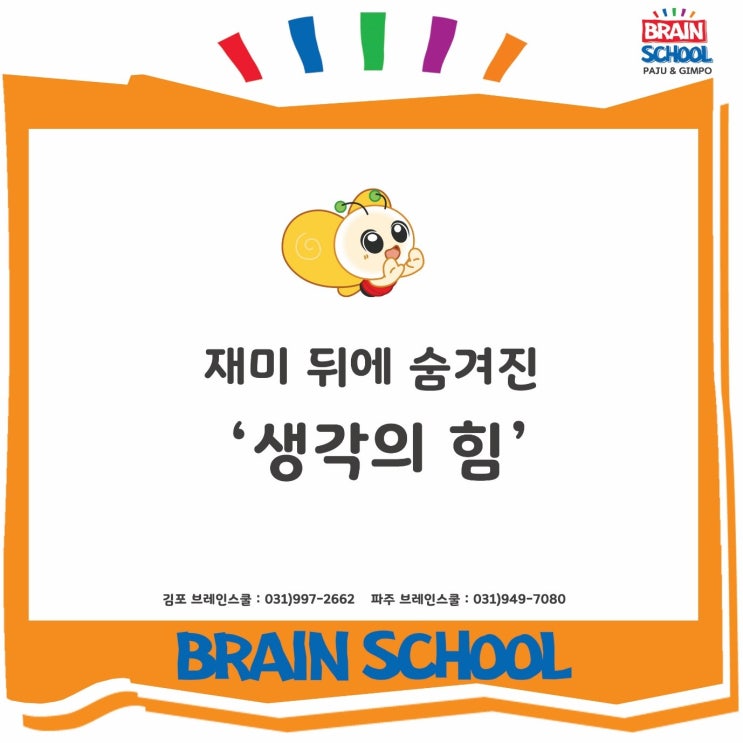 안녕하세요. 브레인스쿨 김포·파주센터입니다 수업이 끝난 후 아이들에게 물어보면 “재밌어요!” 라는 말을 자주 듣게 됩니다. 그런데 브레인스쿨에서의 ‘재미’는 단순한 놀이에서 오는 것이 아닙니다. ✔ 아이들이 재미를 느끼는 이유 아이들은 ✔ 직접 만져보고 ✔ 관찰하고 ✔ 변화하는 과정을 경험하면서 스스로 생각하는 과정에서 재미를 느낍니다. 예를 들어 ✔ 물을 흡수하는 실험 ✔ 빛을 이용한 탐색 활동 ✔ 재료를 활용한 창의 표현 이 모든 활동 속에서 아이들은 ✔ “왜 그럴까?” ✔ “다르게 하면 어떻게 될까?” 를 자연스럽게 고민하게 됩니다. ✔ ‘재밌다’는 말의 진짜 의미 아이들이 말하는 “....... <img src="https://blogthumb.pstatic.net/MjAyNjA0MThfMjI2/MDAxNzc2NDkwNjUyOTY4.IQPfXMZgSmET7PDRDtgkPmg619c1rLGm0cmkRPvgpGIg.2yplBPqfvD3bBOy_TLGYbdrevK5e2XN5q19YjTNVLQcg.JPEG/KakaoTalk_20260418_125831718.jpg?type=s3" />
