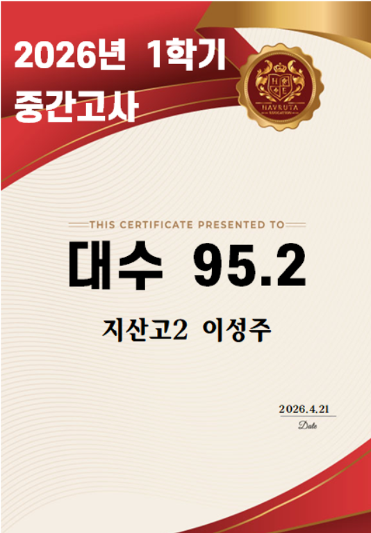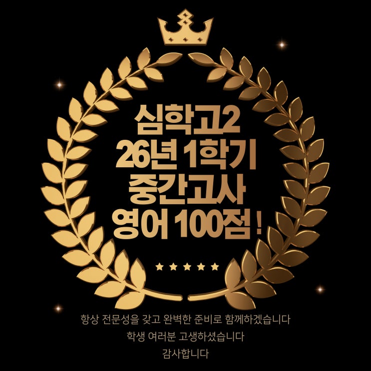 원이어학원 심학고2 26학년도 1학기 중간고사 영어100점, 전교 1등 !