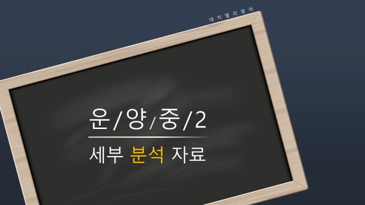 2026학년도 1학기 중간고사 운양중 2학년 영어 시험 완전 분석 안녕하세요, 김포 운양동 대치앨리영어입니다. 이번 운양중 2학년 1학기 중간고사 영어 시험은 단순 암기형 시험이 아닌, 어휘·문법·독해·서술형까지 전 영역을 균형 있게 평가하는 시험이었습니다. 실제 시험을 분석해보면, “제대로 준비한 학생과 아닌 학생의 점수 차이가 크게 벌어지는 구조”였습니다. 1. 시험 범위 & 전체 난이도 시험 범위 교과서 1~2과 학교 프린트 (영단어 + 문법 + More Reading 2개) 전체 난이도: 중 총 24문항 (객관식 21 + 서술형 3) 작년과 달리 서술형 포함 내용일치 + 어법 중심 출제 겉보기에는 어렵지 않지만....... <img src="https://blogthumb.pstatic.net/MjAyNjA0MjRfMjEg/MDAxNzc3MDI1MDY4OTc0.1VkyCcO9OW2-w8MxDlzR5K01nlg98HvtEan4J1bA_1Ug.122aXRV0BA1c8SP_7hXhMzRkD69mOhtA6hu0TfuDf00g.JPEG/%BD%BD%B6%F3%C0%CC%B5%E51.JPG?type=s3" />