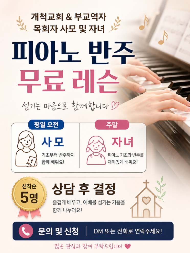 사모 & 자녀를 위한 피아노 반주 무료레슨