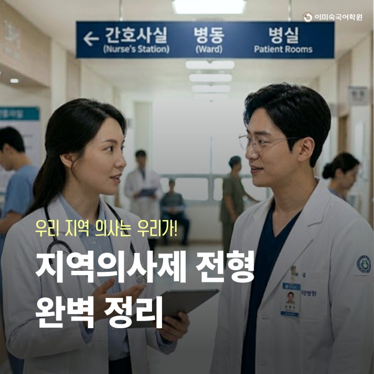 안녕하세요. 이미숙국어학원입니다. 최근 의대 증원 이슈와 함께 가장 주목받는 키워드는 바로 지역의사제 입니다. 이름은 들어봤지만, 정확히 어떤 제도인지, 우리 아이에게 유리한 전형인지 궁금해하시는 학부모님들이 많으신데요. 오늘 이미숙국어학원에서 이 복잡한 정책을 아주 쉽고 꼼꼼하게 핵심만 짚어 정리해 드리겠습니다. 01. 지역의사제란 무엇인가요? * 지역에서 나고 자란 인재를 뽑아, 그 지역의 의사로 키우는 제도입니다. 현재 비수도권 지역은 의사 부족 현상이 심각합니다. 이를 해결하기 위해 의대 입시 단계에서부터 졸업 후 특정 지역에서 일정 기간 근무할 학생을 따로 선발하는 방식입니다. ✔ 핵심 포인트 선발된 학생....... <img src="https://blogthumb.pstatic.net/MjAyNjA0MjZfMTA3/MDAxNzc3MTc4Njc0NTQ5.PQAe3TAbZYcznvynCNLCUHcFBCSQVJW0fqLsksLJV6Ug.kx-7jp6o7ZbHvV3RRNkOYZZOximtZTC6GH4bPzsO87Mg.JPEG/%C1%A6%B8%F1%C0%BB-%C0%D4%B7%C2%C7%D8%C1%D6%BC%BC%BF%E4__%BA%B9%BB%E7%BA%BB-001_%281%29.jpg?type=s3" />