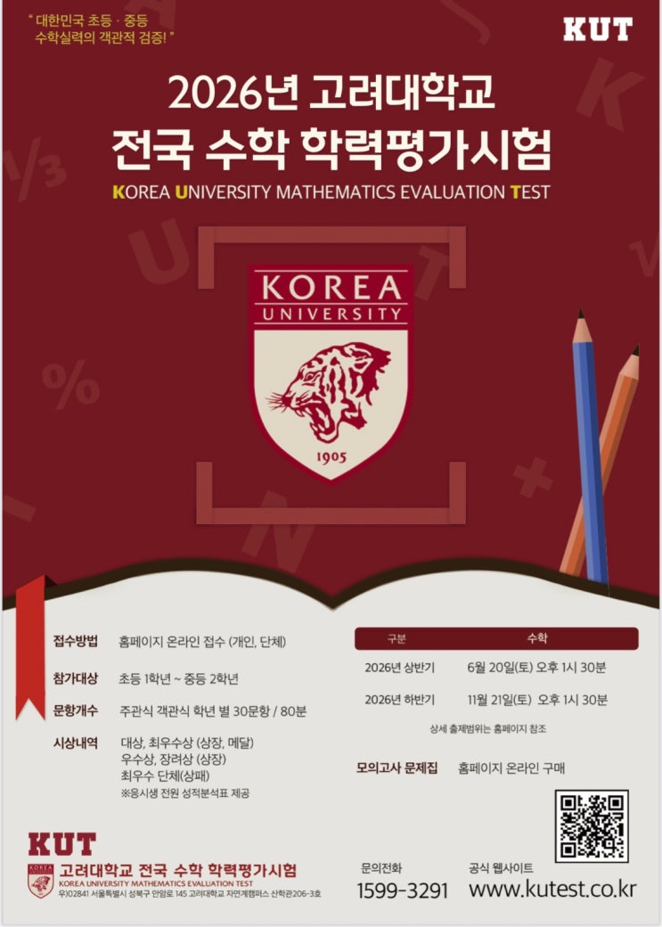 안녕하세요 이엠영수학원입니다 2026년 6월 20일에 실시하는 고려대학교 전국 수학 학력평가시험을 학원에서 시행합니다. 많은 접수 부탁드립니다. 우리 학생들의 수학실력을 평가하는 아주 좋은 기회가 될것으로 보여집니다 감사합니다^^ 문의 010-7503-0582 <img src="https://blogthumb.pstatic.net/MjAyNjA0MjNfOTUg/MDAxNzc2OTI2MTUyNTYx.uM5fMJcYet2nVeaNP_Z8MYDORzA6qRqRrpRbM-YfeTEg.ds-6nHH_on03UHEHeTXDgdNx29ipegvwsUGsDoLYMR8g.JPEG/KakaoTalk_20260423_152131661.jpg?type=s3" />