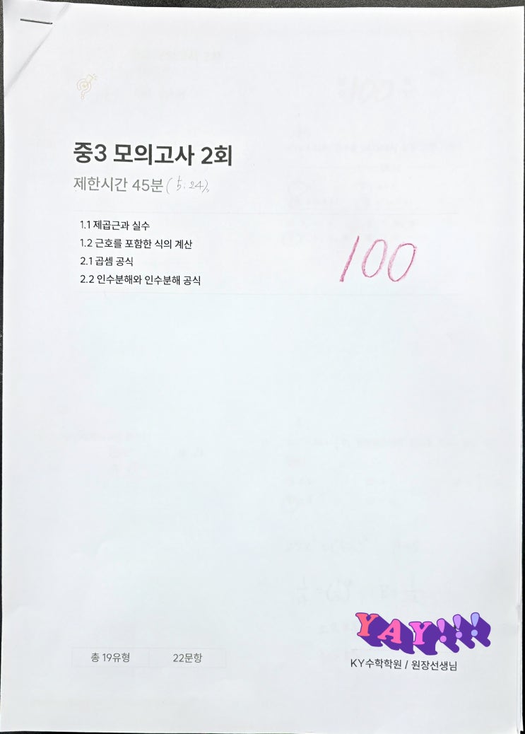 [KY수학] 백신중·백석중 실전 대비 모의고사 결과: "학교 시험 난이도 완벽 반영, 성적 향상 준비 완료!"
