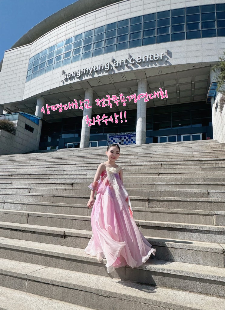 안녕하세요. 플로라무용학원입니다. 지난 4월 12일 토요일에는 상명대학교 전국무용경연대회가 있었어요. 저희 플로라무용학원에서는 한국무용 창작으로 ○진이가 첫 콩쿠르 데뷔 무대를 가졌네요~ 첫 무대인데도 작년 7세 시절 한국무용 창작 군무로 대회의 경험이 있어서인지 떨지 않고 씩씩하게 무대에서 마음껏 뽐내고 나오더라고요. 그 결과.... 최우수상!! 도 수상했어요~ 앞으로도 꾸준히 발전하는 은진이를 위해 최선을 다해 지도하고 더욱더 발전하는 모습 기대해 기대할게요~ 플로라무용학원에서는 유아. 초등 취미 발레와 한국무용반부터 전공 입시반과 성인 취미반 수업이 이루어지고 있어요. 아이들의 기초적인 근력과 유연성을 길....... <img src="https://blogthumb.pstatic.net/MjAyNjA0MThfMTY5/MDAxNzc2NDgzNTI2Nzg2.UPiGBDRjKJydnjp9JAanDYvfmhimZMcG9pCvJvb8HBsg._6QzEfUerQFUtOWXECqTZbdoIDRaKUzEccLvXgZxRwog.JPEG/%C7%D1%B1%B9%B9%AB%BF%EB%C0%FC%B0%F8%C0%CF%BB%EA.jpg?type=s3" />