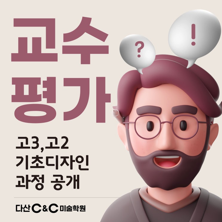 안녕하세요, 다산 씨앤씨미술학원입니다. 이번 4월에는 아트앤디자인에서 진행하는 교수평가에 참여하였습니다. 교수평가는 정해진 시간 안에 그림을 완성하여 온라인으로 제출하면 대학교 교수님들께서 작품을 직접 평가해주는 방식으로 진행됩니다. 단순한 학원 내 평가가 아니라 외부 기준에서 현재 그림을 점검해볼 수 있는 기회입니다. 이번 교수평가는 고3 학생들과 고2 학생들 일부만 출품하였습니다. 현재 준비 단계와 수업 흐름을 고려하여 필요한 학생들 중심으로 참여를 진행했습니다. ■ 교수평가가 중요한 이유! 이 과정은 결과보다 현재 상태를 정확하게 확인하는 데 의미가 있습니다. ✔️ 지금 어떤 부분이 부족한지 ✔️ 한 장....... <img src="https://blogthumb.pstatic.net/MjAyNjA0MTZfMTk2/MDAxNzc2MzQxMTE0MzM0.2o1C_7FjsJWhKjESJMqGXSdv4uhfxsmaCiDCePuguC4g.HJr8EVdz-Vz8oIbPQycoPeCfi1XRn0ybtogpMeo5198g.JPEG/%C1%A6%B8%F1%C0%BB_%C0%D4%B7%C2%C7%D8%C1%D6%BC%BC%BF%E4._%282%29.jpg?type=s3" />