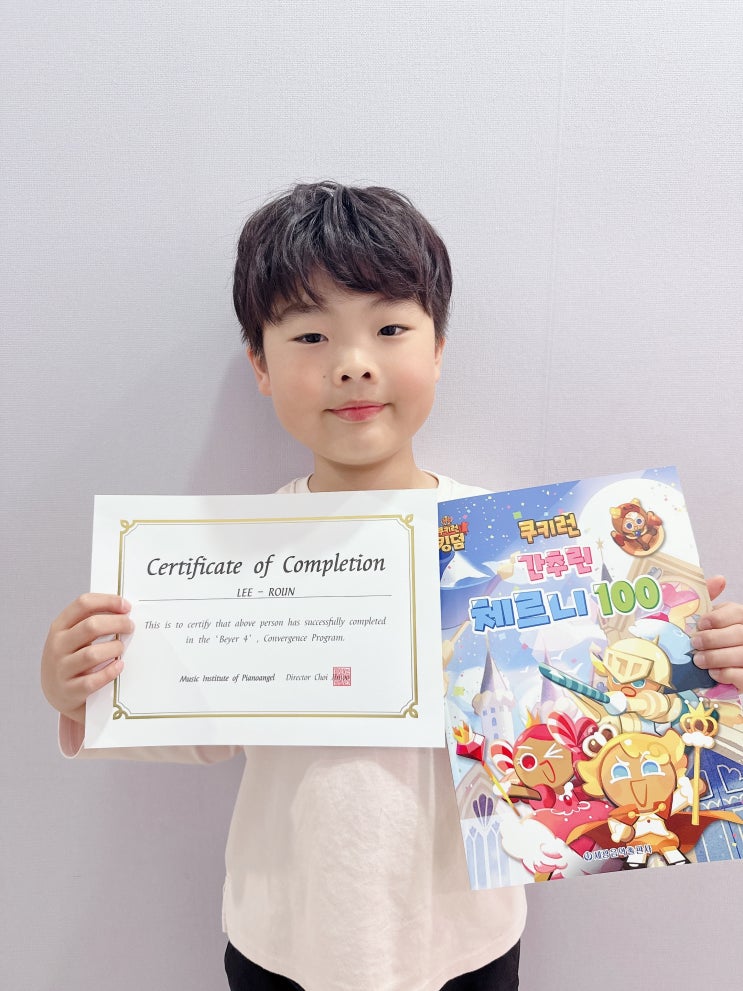 안녕하세요! 학생을 먼저 생각하는 피아노천사 음악학원입니다♡ 요즘 우리 피아노천사에서는 승급의 바람이 봄바람처럼 살랑살랑 불어오는데요 오늘도, 우리 엔젤이의 체르니 100 승급 소식을 들고왔어요! 사진에서부터 풍기는 장난기 가득~~한 모습의 엔젤이입니다 ㅎㅎ (엔젤이는 사실 피아노보다 선생님이랑 대화하는 게 더 좋대요!) 얼른 진도 나가고싶어서 바이엘 4권 끝자락부터는 자발적으로 얼마나 열심히 연습했는지 몰라요~ 새로운 책으로의 진도라는 의미가 아이들의 성장에 있어서 굉장히 크게 다가온다라는 것을 많이 느끼는 요즈음입니다! 체르니 100을 치는 형아가 되었기 때문에 연습하는 시간도 늘리는 것에 동의했어요~ㅎㅎ 연....... <img src="https://blogthumb.pstatic.net/MjAyNjA0MTdfMjM4/MDAxNzc2NDAxNzU4MjY1.089D05H7-AubegvE8moal_3VzUjop-JxhUmEZQ-Dsvog.ZP5elA8nEZzGbiW5NkHllPD2-D0rdz-uraxj37-cV_Yg.JPEG/KakaoTalk_20260414_161857599_01.jpg?type=s3" />