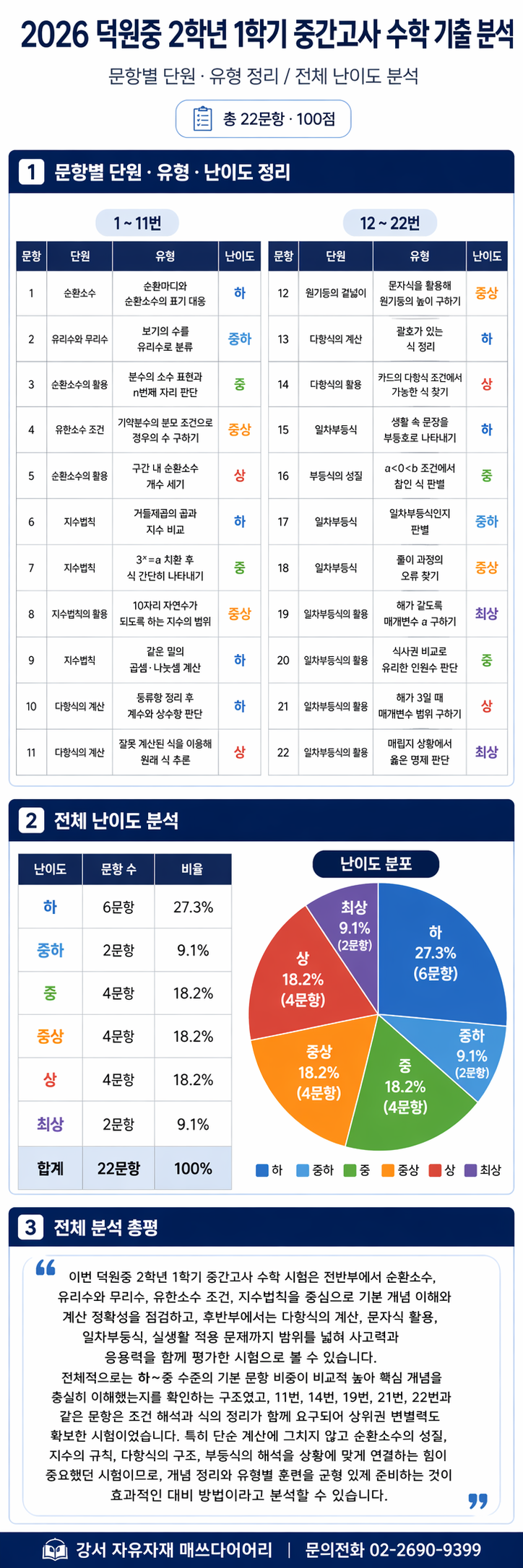 덕원중2∙3 학년1학기 중간고사(26.4.23) 분석