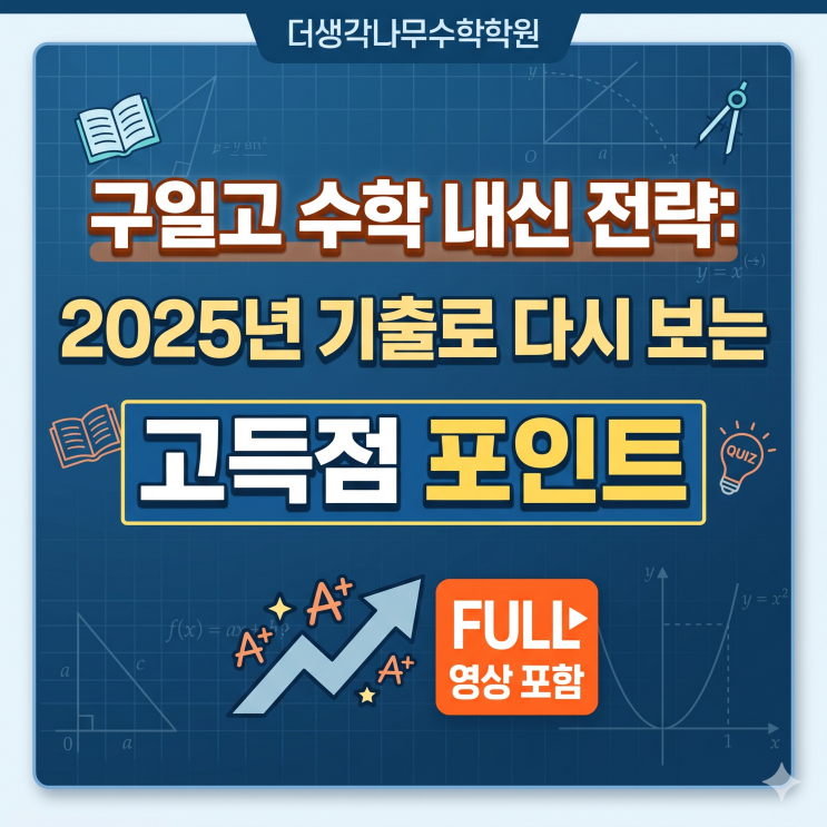 안녕하세요! 구일고 학생들의 수학 성적 향상을 위해 끊임없이 연구하는 더생각나무수학학원입니다. 오늘은 작년에 치러졌던 2025학년도 구일고 1학년 1학기 수학 중간고사 기출 분석 영상을 들고 왔습니다. 이번 2025년도 시험은 많은 학생을 당황하게 했던 시험이었습니다. 2024년도와 비교했을 때 난이도가 상당히 상향 조정되었는데요. 난이도 급증: 단순 연산보다는 사고력을 요구하는 문항이 늘어났습니다. 평균 하락: 전체적인 난이도 상승으로 인해 학생들의 평균 점수가 작년 대비 눈에 띄게 하락했습니다. 변별력 문항: 등급을 가르는 킬러 문항들이 어떤 개념에서 출제되었는지 정확히 파악해야 합니다. "도대체 어디서부터 꼬인....... <img src="https://blogthumb.pstatic.net/MjAyNjA0MTdfNDcg/MDAxNzc2Mzg3MTQ2NjIz.SCri4fr7L9S_NTAIHy0D7zOVQZiG3A-s4hZkK1bNV4Yg.EUxySMrRHy2DvdKt_klE1b5FU_27Dd_hmVCAXSVm89wg.PNG/Gemini_Generated_Image_2bi3s52bi3s52bi3.png?type=s3" />