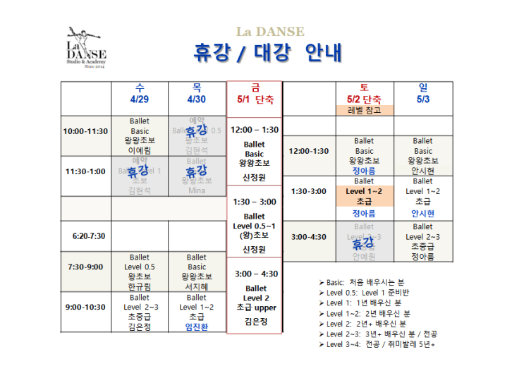 4/29~5/3 휴강, 단축 스케줄 // 5월 시간표