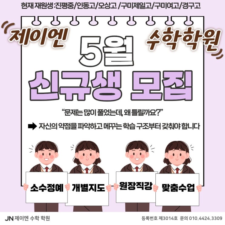 [구미 구평동 수학학원|제이엔 수학 학원] 5월 신입생 모집 안내