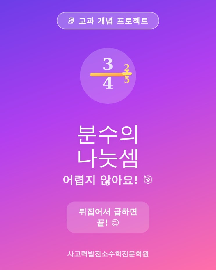 분수의 나눗셈이 어렵게 느껴지는 이유 초등학교 5~6학년 수학에서 아이들이 가장 많이 어려움을 토로하는 단원 중 하나가 바로 " #분수의나눗셈 "입니다. 자연수의 나눗셈은 익숙하지만, 분수끼리 나누는 상황이 되면 머릿속이 복잡해지기 시작하지요. "왜 나누는데 뒤집어서 곱해요?" 라는 질문, 정말 자연스럽고 훌륭한 질문입니다. 이 글에서는 분수 나눗셈이 탄생한 역사적 배경부터, 왜 역수를 곱하는지 그 원리까지 초등학생도 쉽게 이해할 수 있도록 차근차근 설명해 드리겠습니다. 분수는 언제부터 사용했을까요? 분수는 어느 날 갑자기 교과서에 등장한 것이 아닙니다. 인류가 음식, 땅, 물건을 공평하....... <img src="https://blogthumb.pstatic.net/MjAyNjA0MTdfMTc0/MDAxNzc2NDA2MDA1MDEw.KA0NbDBgv4QeJWOw22id8R1HvSwPPMCpTkOw0thkuRIg.1gwlMSji_9KIkcFwXQMyCbhzlYp4JRWDDFw7-_ywcg8g.JPEG/card1.jpg?type=s3" />