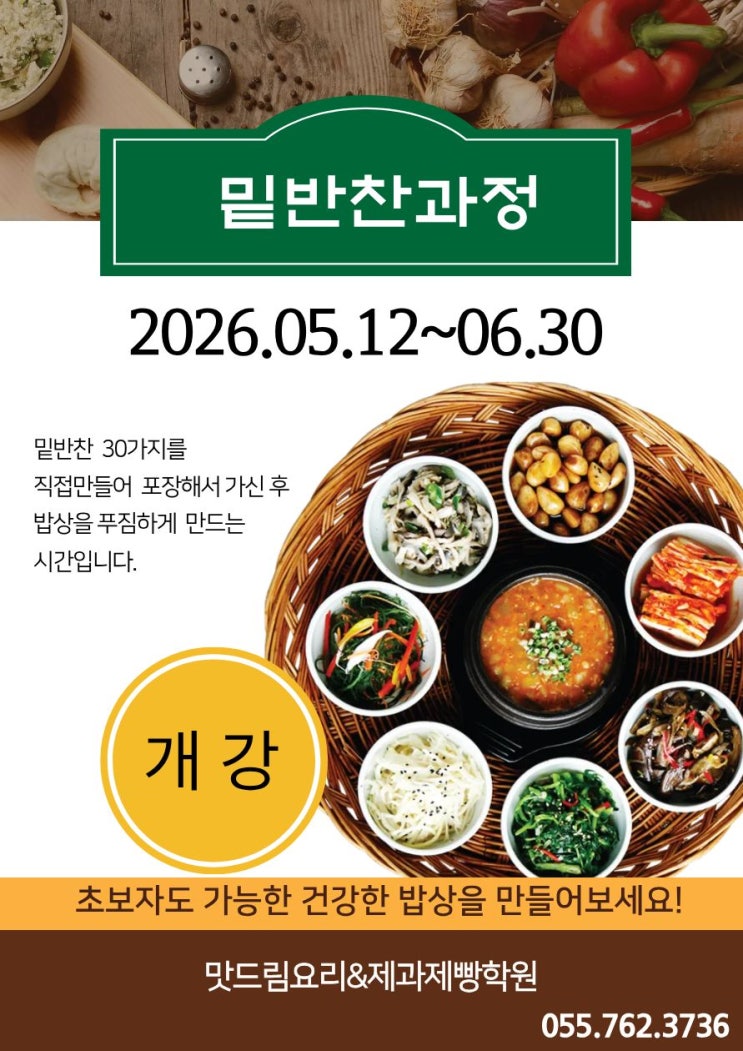 경남 진주 요리제과제빵학원 맛드림요리&제과제빵학원) 2026 내일배움카드, 국비, 조리기능사,가정요리,생활요리 개강 안내