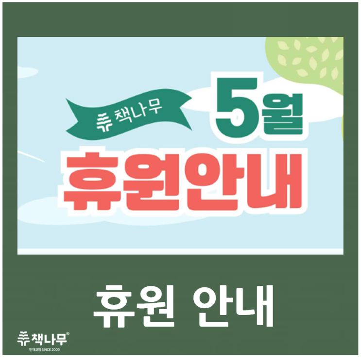 [공지] 책나무 본리점 5월 휴원 및 수업 일정 안내 안녕하세요, 책나무 본리점입니다. 푸른 신록이 더해가는 가정의 달 5월을 맞아, 본원의 휴원 일정 및 수업 안내를 드립니다. 가족과 함께하는 소중한 시간 되시길 바라며 아래 일정을 확인해 주시기 바랍니다. 5월 휴원 일정 안내 5월 1일 (금): 노동절 휴원 5월 5일 (화): 어린이날 휴원 5월 24일 (일): 부처님 오신 날 (정기 휴무) 5월 25일 (월): 대체공휴일 휴원 안내 사항 - 정상 수업: 위 휴무일을 제외한 모든 요일은 평소와 같이 정상 수업이 진행됩니다. (5월 4일 월요일은 정상 수업합니다.) - 보강 안내: 공휴일 휴원으로 인한 보강 일정이나 수업 횟수 조정이 필요한 경....... <img src="https://blogthumb.pstatic.net/MjAyNjA0MjhfNDAg/MDAxNzc3MzQ5MjUyNDY2.MX142nompOyEZZox5-mZAOmxF_zdI1TYrYh25KKd--gg.oJu23Jw09eCpnWBmd3JNFJcmySQgT4-MgQ4EP0N_KB0g.PNG/image.png?type=s3" />