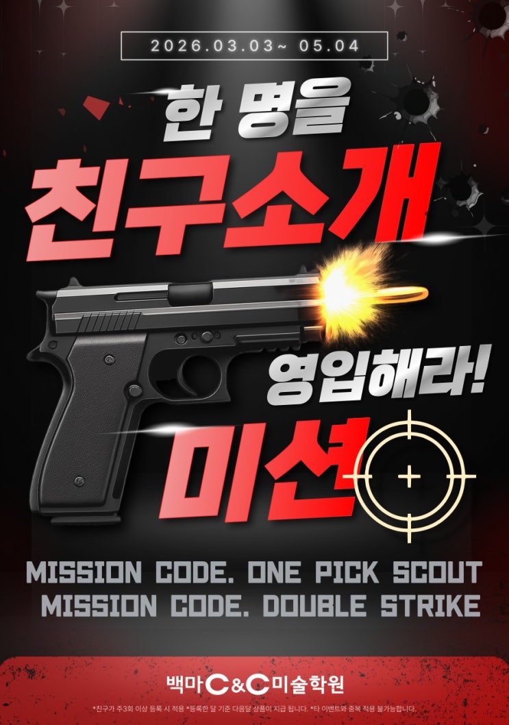 [백마미술학원/백마학원가미술학원] 백마C&C 친구소개 이벤트 - 3-5월 3개월이벤트(친구를 영입해라! 미션)