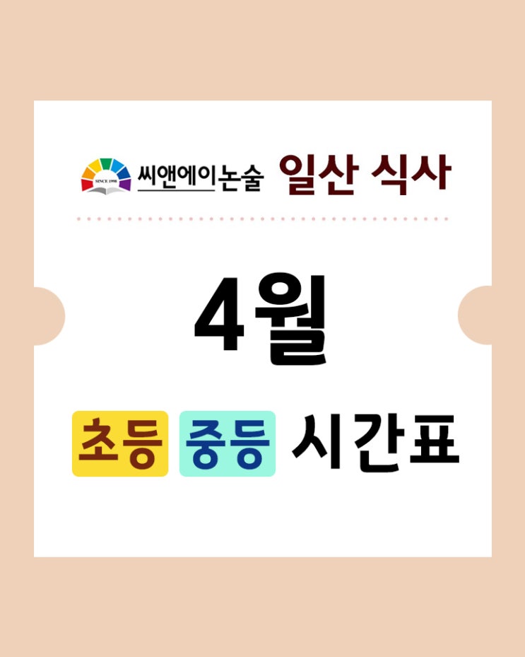 안녕하세요!~ 씨앤에이논술 일산식사점입니다 현재 수업 가능한 시간표 올립니다 * 시간표는 사정에 따라 변동 될 수 있습니다 저희 학원은 독서, 토의· 토론, 글쓰기를 원칙으로 하는 씨앤에이논술 프로그램에 국어 프로그램을 결합하여 수업을 진행을 하고 있습니다. (부교재 수업) 초등5~ 중등 수업은 부교재수업 진행됩니다. 방문 상담 예약하기 https://t.aca2000.co.kr/onlineReserve?t=ODUyMjZeXl4y 자세한 문의 또는 상담 전화는 031-969-2925로 전화 주세요~ 감사합니다。 <img src="https://blogthumb.pstatic.net/MjAyNjA0MThfMTEz/MDAxNzc2NDk1OTA5MDA2.bSHVB-_1GdFwLg9btSW_0VKnBFc7rOfDdpQXtzHjIKog.nPUbf6XoKmriiwG7wdXggOKB1bdgROvwNlkeXXooRNsg.JPEG/%BD%C3%B0%A3%C7%A5_%B4%EB%C7%A5.jpg?type=s3" />