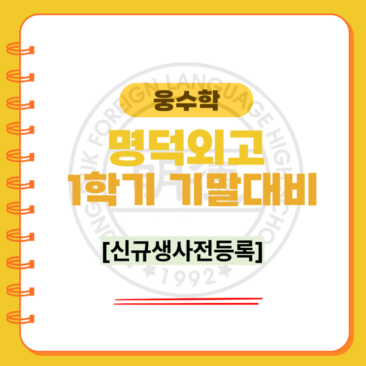 2026학년도 1학기 기말고사대비 웅수학 명덕외고반 사전등록 안내입니다. 사전등록에서는 입반 테스트는 진행하지 않습니다. 반드시 레벨테스트는 거쳐야 합니다. (M반은 입반테스트 + 성적제출) 현재 전반 결원 상황입니다. 명덕외고 35기 고1 M - 2명 (레벨테스트 및 중간고사 성적이 반드시 필요합니다.) 명덕외고 35기 고1 A1 - 3명 (레벨테스트가 필요합니다.) 명덕외고 35기 고1 A2- 4명 (레벨테스트가 필요합니다.) 명덕외고 34기 고2 M - 2명 (레벨테스트 및 중간고사 성적이 반드시 필요합니다.) 명덕외고 35기 고2 A - 4명 (레벨테스트가 필요합니다.) 웅수학 수강 신청은 구글폼으로 남겨주시면 연락드리겠습니다. 신청 링크: https:/....... <img src="https://blogthumb.pstatic.net/MjAyNjA0MTlfMTEx/MDAxNzc2NTI3Mjg0OTgz.VZGGcxuGpOOiqp_JnsoZTaZVg_T3HwaDyR674q5jB90g.wFEK2viR1J2TBJdG-DpC7yV3u0feDlNu5dN4RoAqm5og.PNG/1.png?type=s3" />