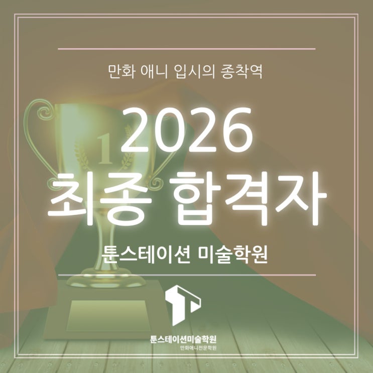 안녕하세요 만화 애니 게임 입시전문 툰스테이션 미술학원 입니다! 2026 만화 애니 게임 입시가 드디어 막을 내렸습니다 한 해 동안 부모님보다 선생님 얼굴을 더 많이 본 우리 학생들 항상 믿고 응원 해주신 학부모님들 그리고 매년 학생들을 위해 힘써주시는 선생님들 모두 고생 많으셨습니다! 그럼 2026 입시 결과를 보러 같이 가보실까요? 이번 저희 툰스테이션에서는 무려 총 120명의 합격자를 배출했습니다!! 그 중에서도 주요대학 청강대 21명 건국대 2명 상명대 3명 세종대 3명 에 합격 하였습니다 학생들의 합격을 진심으로 축하합니다! 저희 툰스테이션 미술학원은 만화 애니 게임을 전문적으로 지도 하고있으며, 단체보다는 개인을 위....... <img src="https://blogthumb.pstatic.net/MjAyNjA0MTFfMTQ1/MDAxNzc1ODc1MjkxMjU1.rnsGhglJgZqWZdzpr3bGkvAuebBrt8Xgtn88gG7eahYg.gfOl4bP_rqDUBj9X2k7_nxeO4YaYipNThuia6Of-ojgg.JPEG/%C1%A6%B8%F1%C0%BB-%C0%D4%B7%C2%C7%D8%C1%D6%BC%BC%BF%E4_-001_%282%29.jpg?type=s3" />