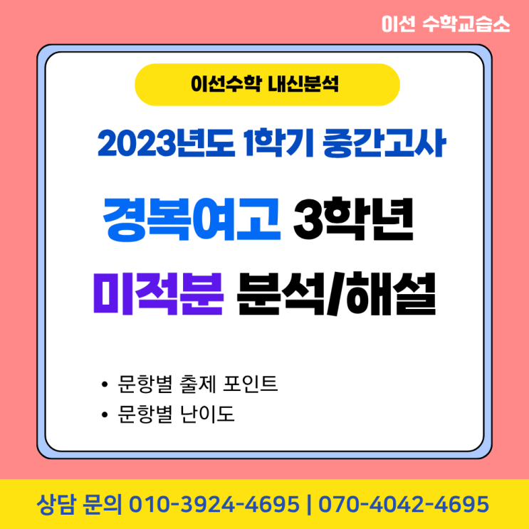 [이선수학 내신대비] 경복여고 - 2023년도 3학년 1학기 미적분 중간고사 기출문항 분석 및 풀이 (일부공개)