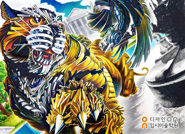 안녕하세요 저번에 이어서 포항디자인온 미술학원의 선생님들 실력을 보이도록 하겠습니다 오늘은 저번에 공개 했던거 외에 다시 추려서 올립니다 초반 3장은 기초소양실기 즉, 서울대 국민대 과기대 등의 학교들을 겨냥하여 연구해 놓은 작품들입니다 주제는 기억이 잘 안납니다 너무 많아서요 ;; 솔직히 이제는 수상한것들도 기억이 나지 않아요;; 트럼펫으로 맹수 만드는 문제였을 겁니다 여기서 올라와 있지 않은 그림들도 있는데 약육강식 그리고 사상누각 같은 사자성어가 문제로 나온적도 있습니다 이처럼 기초소양실기는 고등부가 해석할 수 있는 테두리 안에서 문제들이 구성이 됩니다 사실 학생의 테두리라고는 말하지만 범위는 꽤나 넓....... <img src="https://blogthumb.pstatic.net/MjAyNjA0MTZfMjIz/MDAxNzc2MzIyNzYxMDI2.jeTybDMrcmS46w_Lp2mSxoWHfp_5N_Yp6oIwM71oSdog.0Qd1LAtvOqRz-GlX7gCOfSDYftIHEuunDBikCNRmdvIg.JPEG/KakaoTalk_20260415_161746619_06.jpg?type=s3" />