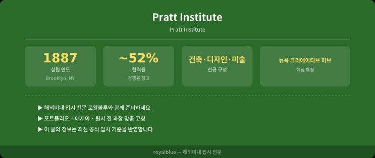 Pratt Institute 학부 입시 – 건축·파인아트·산업디자인 전공별 완전 비교