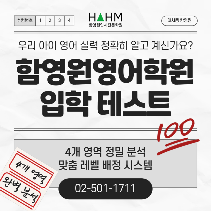 대치동 함영원영어학원 입학테스트 안내 | 성적분석표로 보는 맞춤 레벨 배정 과정