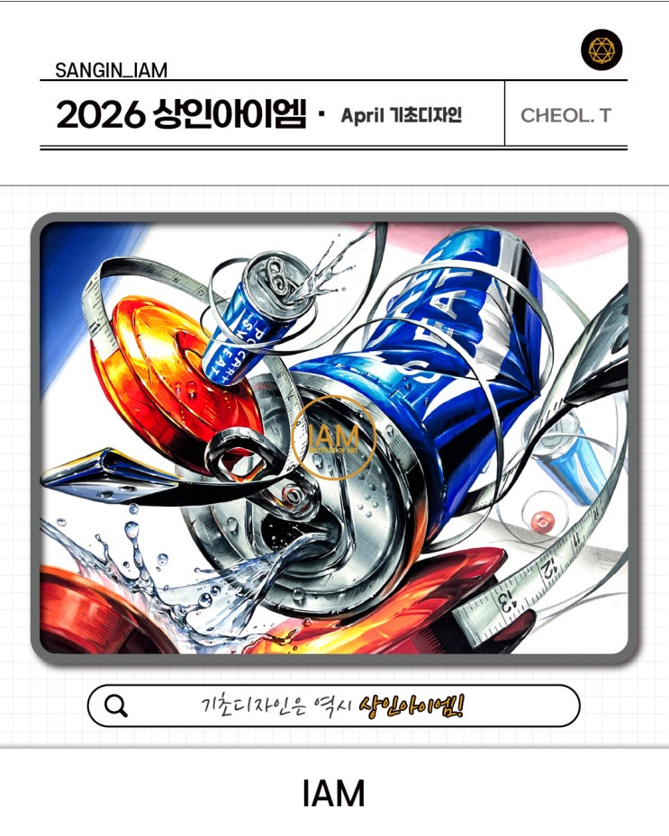 구미술학원 대구입시미술학원 상인동미술학원 상인동입시미술학원 신월성미술학원 달서구미술학원 대구미술학원추천 상인아이엠 입니다 오늘은 상인아이엠 4월 기초디자인 수업작중 cheol . T 의 시범작을 가져왔습니다 파괴된 형체-단순히 캔을 배치한 것이 아니라, 캔이 강력하게 찌그러지고 터지는 순간을 포착했습니다 이는 화면 전체에 에너지를 부여하며 시선을 단번에 사로잡는 '주제부'의 역할을 톡톡히 합니다 곡선과 직선의 조화 / 유연하게 휘어지는 줄자와 캔의 찌그러진 단면, 그리고 튀어 오르는 물방울이 선적 요소와 면적 요소로 적절히 섞여 화면의 흐름(리듬감)을 아주 잘 만들어내고 있습니다 2026 수업시범작 cheo....... <img src="https://blogthumb.pstatic.net/MjAyNjA0MjVfMTYx/MDAxNzc3MDg1MjgxMzA3.od5CX5suDOHay8cTLT9EHGfkAD9lLikLHgyXf6VPaVcg.VYjBrlYG7z4g9pT6ZHl4X_uA8j0i5Jhya1pYE1mVpPQg.JPEG/121-100.jpg?type=s3" />