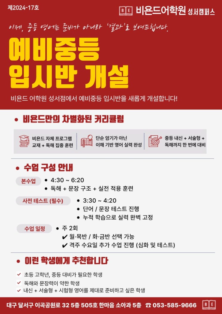 성서영어학원 | 지금 준비 안 하면 늦습니다, 예비중등 영어의 핵심