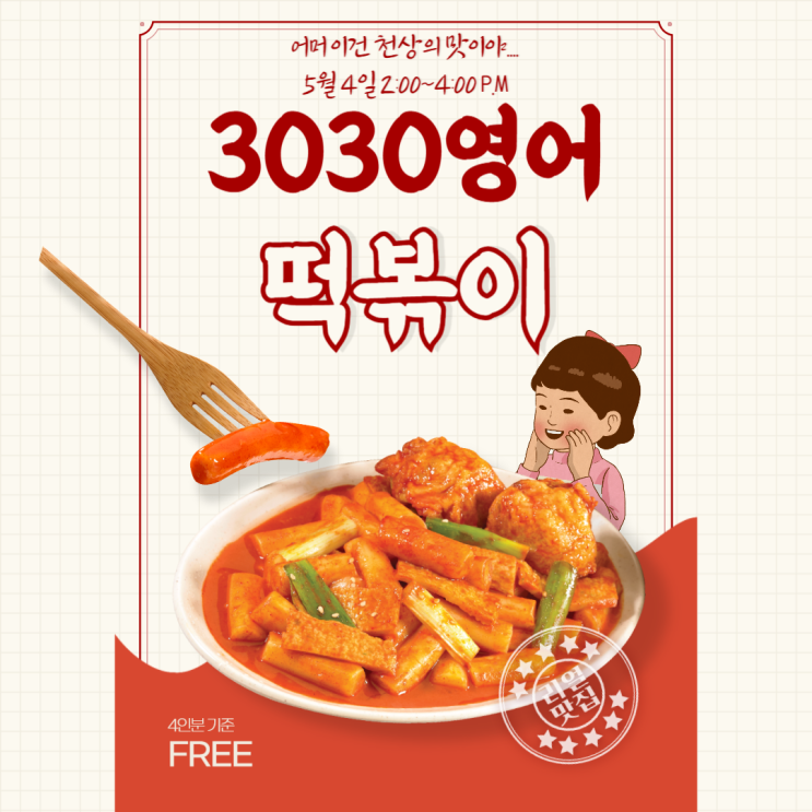 안녕하세요~ 3030영어 감삼러닝센터 Joy.t입니다^^ 5월 이벤트 다가오는 가정의 달 5월을 맞이하여 아이들과 함께하는 즐거운 떡볶이 파티를 준비 했어요! 맛있는 간식과 함께 즐거운 추억 만들겠습니다. 또한,참여하는 친구들에게는 달콤한 솜사탕 선물도 준비되어 있습니다. 열심히 공부한 우리 아이들, 맛있게 먹고 신나게 즐겨요 휴원 안내 가정의 달 일정으로 인해 아래 기간은 휴원입니다. 수업 일정에 착오 없으시도록 꼭 확인 부탁드립니다.^^ 영어 학습의 첫 걸음! 파닉스는 영어 알파벳의 소리의 관계를 배우는 기초 학습입니다. 파닉스를 제대로 익히면 처음 보는 단어도 스스로 읽을 수 있고 정확한 발음을 자연스럽게 익힐 수 있습....... <img src="https://blogthumb.pstatic.net/MjAyNjA0MjhfMTM0/MDAxNzc3MzM0MTQzMTU3.upIyFKviU7XG5NARiLS6CIJqKtRIMsHDUj1T1zfv17wg.H5nVvbzgux_49mru2j4RwW18W4qY6VqYmaJeJFRoFlsg.PNG/3030%BF%B5%BE%EE_5%BF%F9_4%C0%CF.png?type=s3" />