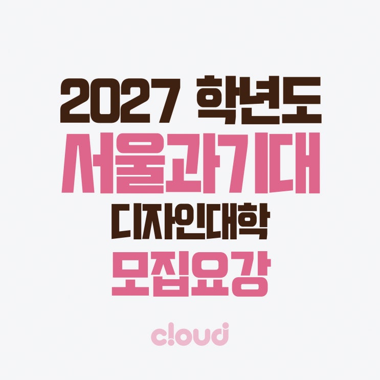 안녕하세요 대전 클라우드 미술학원입니다. 오늘의 포스팅은 저번 경희대에 이어 서울과학기술대학교 2027학년도 미대 모집요강을 들고 왔습니다!! 바로 파헤쳐 볼까요! 서울과기대 조형대학은 디자인학과 산업디자인전공 디자인학과 시각디자인전공 도예학과 금속공예디자인학과 조형예술학과 5개의 학과로 나뉘어 있고 창조적인 조형능력과 더불어 국제적인 감각과 지식을 갖춘 전문 고급인재를 육성하기 위하여 신학 협력을 근간으로 하는 교육 특성화 프로그램을 추진하고 있는 대학입니다. 서울에 몇 안 되는 국립대학교로 디자인과 공학이 결합된 학교 특성상 실무 중심의 커리큘럼이 잘 짜여있고 등록금이 사립대의 절반 수준인데 시설은....... <img src="https://blogthumb.pstatic.net/MjAyNjA0MjNfMzcg/MDAxNzc2OTI4OTUyMDg5.MSMXbQ6_jxnmFCez9wQ-FKlqk6ErOCWOd7ontk8wmv8g.zbyCoPJ5bGk54EiiW4-HIue8lTKl-hb6aQgQKkAK-c0g.JPEG/2.jpg?type=s3" />