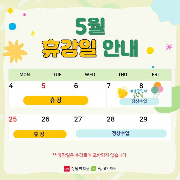 배곧청담에이프릴어학원 5월 휴강일 안내