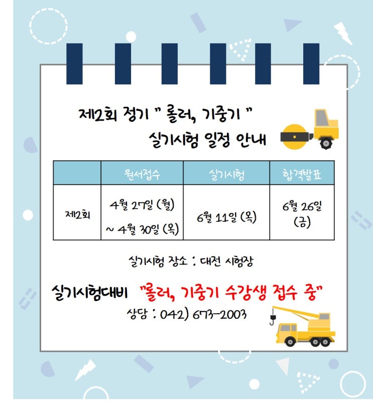 2026년도 2회차 정기실기시험일정 (롤러운전기능사, 기중기운전기능사-중장비 자격증) - 대전롤러,대전기중기
