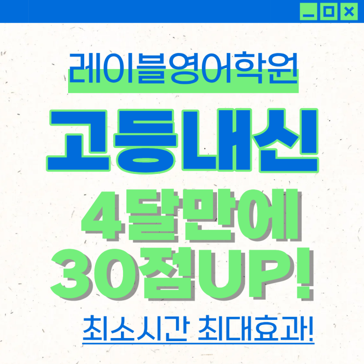 고등 영어 내신 4개월만에 30점 오른 후기 중학교 때부터 예체능을 준비하느라 국영수 기초가 부족했던 학생, 주변에서 흔히 볼 수 있습니다. 실기 연습에 매진하느라 공부할 시간이 턱없이 부족했던 동안고 2학년 학생이 레이블영어를 만난 지 단 4개월 만에 내신 30점 상승(82점)이라는 놀라운 결과를 만들었습니다. 학부모님들이 궁금해하실 레이블만의 효율적인 시스템을 실제 사례를 통해 소개합니다. 검증된 환경에서 시작하는 첫 공부 이 학생은 초등학생 동생이 오랫동안 즐겁게 다니는 모습을 보며 레이블영어에 대한 신뢰를 가졌습니다. 예체능에서 일반계로 진로를 바꾸며 막막했던 순간, 동생이 경험한 학원의 열정과 커리....... <img src="https://blogthumb.pstatic.net/MjAyNjA0MjlfNDkg/MDAxNzc3NDU2Mjk2MDEz.szPIwbpT8eO_zwW-GnOaqubEultgn9pwoFdtxXuB7vEg.yiv-B1lC5y8-TRlOY9SMvoxSYXevV_FNqiyt7v6_v7Ag.PNG/%C1%A6%B8%F1%C0%BB_%C0%D4%B7%C2%C7%D8%C1%D6%BC%BC%BF%E4..png?type=s3" />
