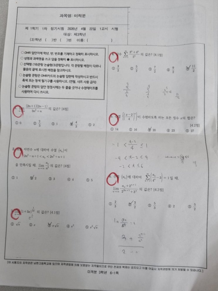 하남수학학원_남한고 3학년 미적분, '시간'과 '정확도'가 승패를 갈랐다[이상호수학전문학원