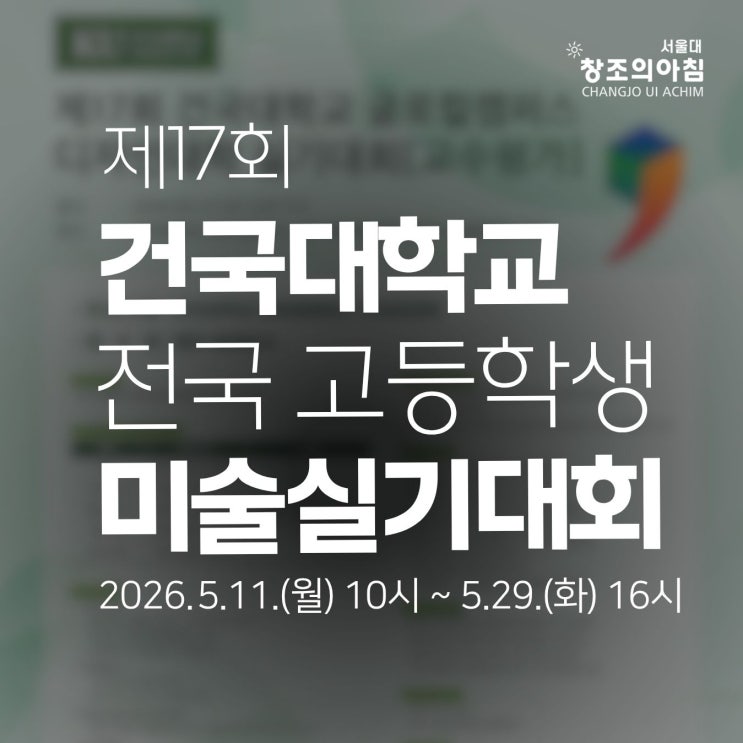 “지금 내 실력, 어디까지 와 있을까?” 안녕하세요? 구로구미술학원 창조의아침 서울대캠퍼스입니다. 오늘도 계속되는 실기대회 소식인데요. 디자인 계열 미대입시를 준비하는 고등학생이라면 많은 관심을 갖는 대회죠! 건국대학교 글로컬캠퍼스에서 진행되는 전국 고등학생 디자인대학 실기대회입니다. 구로구미술학원에서 입시를 준비하는 학생들도 매년 이 대회를 통해 자신의 위치를 객관적으로 확인하고, 이후 전략을 세우는 중요한 기준으로 활용하고 있습니다. 2026 제17회 건국대학교 글로컬캠퍼스 디자인대학 실기대회 대회 일정 및 기본 정보 이번 2026 건국대학교 실기대회는 다음과 같은 일정으로 진행됩니다. 접수기간 : 2026. 5. ....... <img src="https://blogthumb.pstatic.net/MjAyNjA0MjRfMjc5/MDAxNzc3MDE1Njk1MjQx.ed8H5WkpxYa4hqGlOe73nvRI65Ag7IaDYuPELZAHOZkg.cY_oD1AylEXp3z_Re1VCGZ7RlY5un0QsPEmqbLCdQ1Mg.JPEG/%BC%AD%BF%EF%B4%EB%C3%A2%C1%B6%C0%C7%BE%C6%C4%A7_2026_%B0%C7%B1%B9%B4%EB%C7%D0%B1%B3_%B1%DB%B7%CE%C4%C3_%B9%CC%BC%FA%BD%C7%B1%E2%B4%EB%C8%B8_%281%29.jpg?type=s3" />
