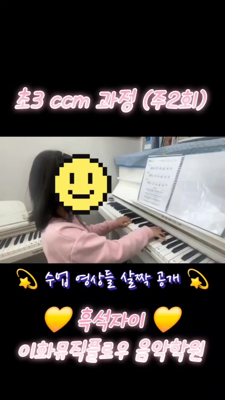 안녕하세요. 이화뮤직플로우음악학원입니다.♥ 오늘은 이화뮤직플로우와 함께하는 행복한 피아노 수업 살짝 공개 수업 준비만으로도 벅차서 인스타 및 블로그 등 따로 잘 못하지만 레퍼토리 연주들 영상을 살 보여드리고 싶었어요✨ 벌써 많은 시간이 정원 마감된 “재밌고, 제대로 배우는” 진.짜. 체계화된 커리큘럼 피아노 전문 수업 현재 이화뮤직플로우음악학원의 피아노 교수학적 커리큘럼은 전문성과 완성도를 인정받아 전국의 다른 피아노학원으로 저희 커리큘럼이 도입 * 적용 되고 있습니다. TEACHER & CLASS · 이대 피아노교수학 석사 원장 철저 관리 및 직강 · 전 강사진 피아노 전공 학·석사 &amp....... <img src="https://phinf.pstatic.net/image.nmv/blog_2026_04_29_267/5hL2xaqBT9_01.jpg?type=f480x480" />